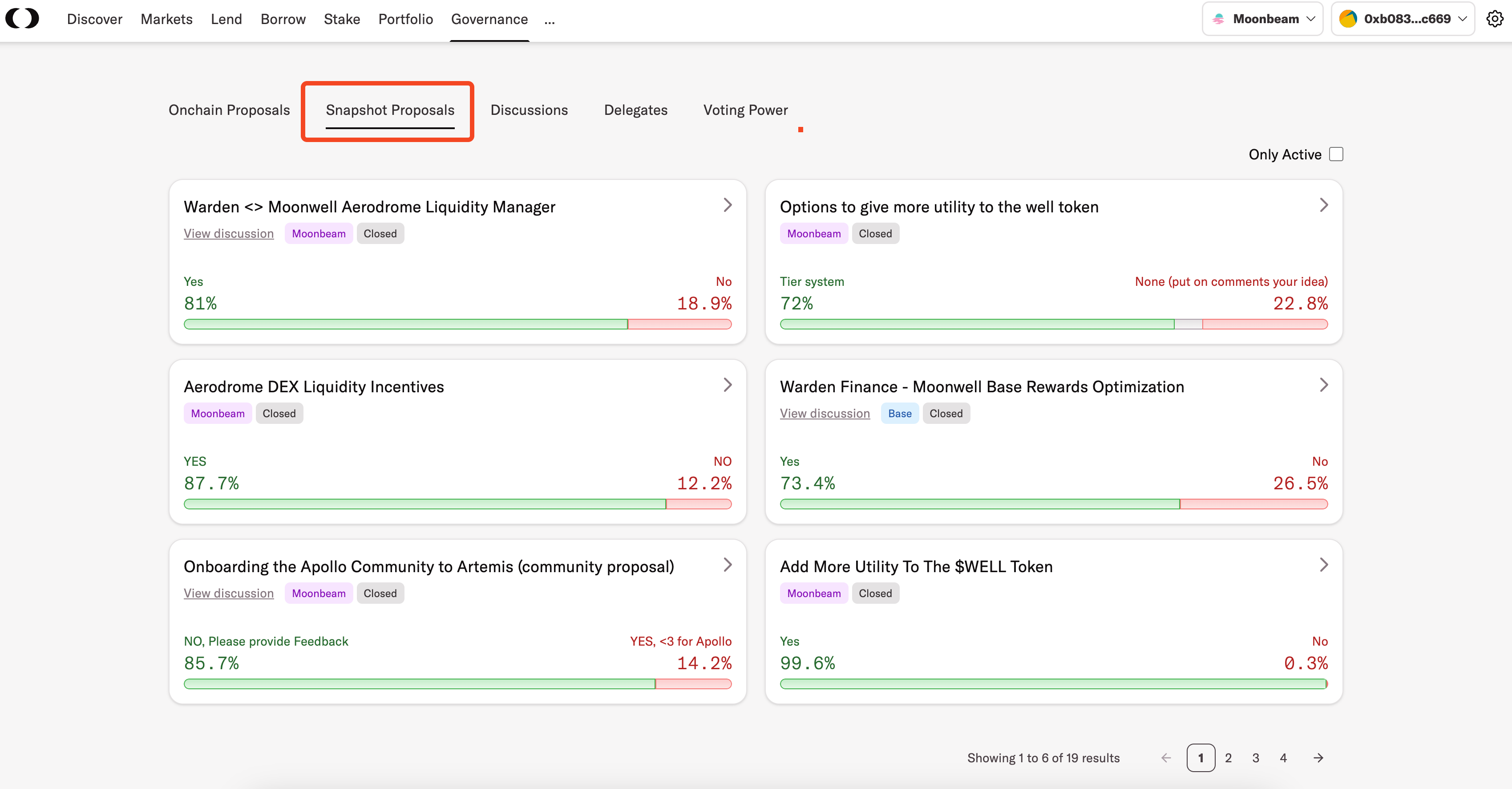 Snapshot proposals can be found by navigating to "[**Governance**](https://moonwell.fi/governance/snapshot-proposals)" within the Moonwell application.