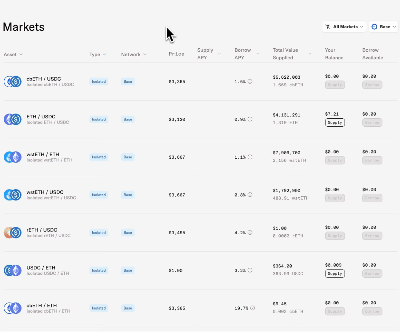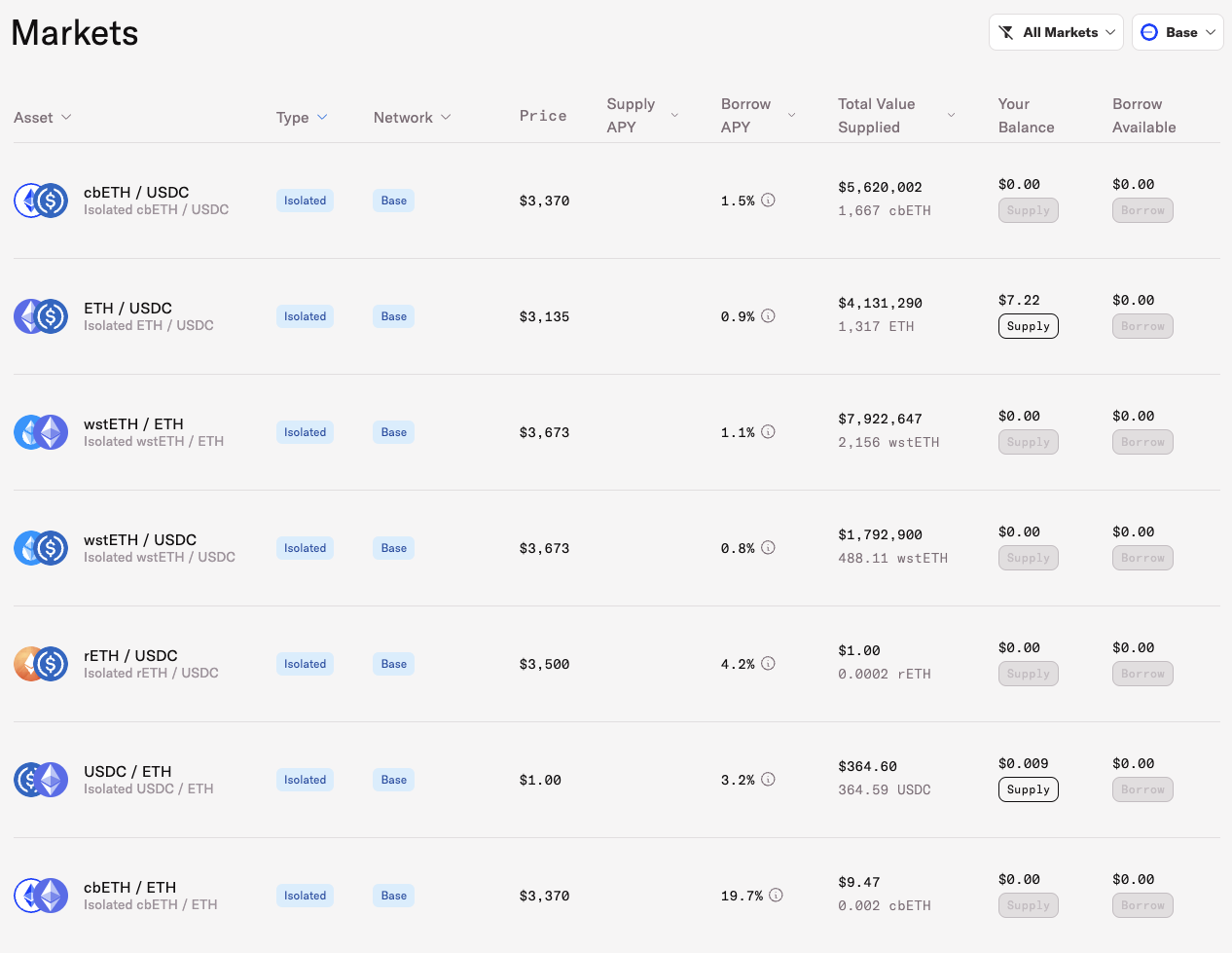 <figure><img src="https://38185780-files.gitbook.io/~/files/v0/b/gitbook-x-prod.appspot.com/o/spaces%2F4535Mbmb8O8Y5q8Xz3cK%2Fuploads%2FRDba8Two0pmEuQhHvO2u%2FCleanShot%202024-07-05%20at%2002.10.09.png?alt=media&#x26;token=fb988eb3-a6aa-473a-bbbe-1f80df9d70ed" alt=""><figcaption><p>ETH/USDC Isolated Market</p></figcaption></figure>