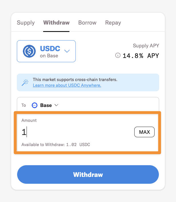 Before making a withdrawal, it is important to confirm that there is enough unborrowed liquidity available. Users are only able to withdraw from the protocol if there is sufficient liquidity to do so. Insufficient liquidity can lead to a failed transaction.