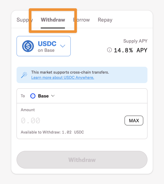 3. Switch to "**Withdraw**" using the tabs at the top of the modal